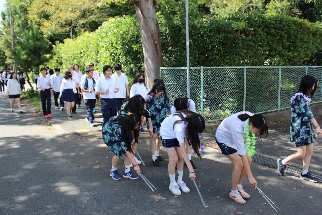 文化祭終了後に2学年全員で地域貢献活動として、学校周辺及び近隣住宅街の清掃活動を行いました。ごみは多くありませんでしたが、生徒たちが熱心にごみ拾いに取り組んでいる様子が伺えました。