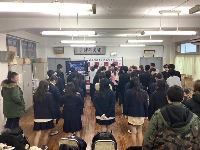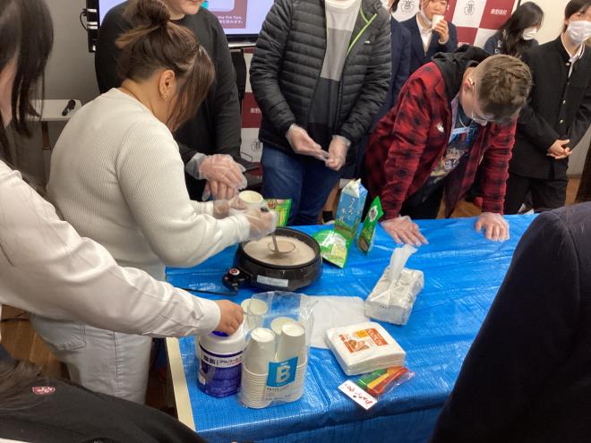 一緒に授業を受け、お昼には本校ストリートダンス部によるダンスパフォーマンスを見てとても盛り上がりました。放課後にはホストファミリーも交えたフェアウェルパーティーを行い、別れを惜しんでいました。また、本校生徒がデザインした湯呑をお土産として渡しました。