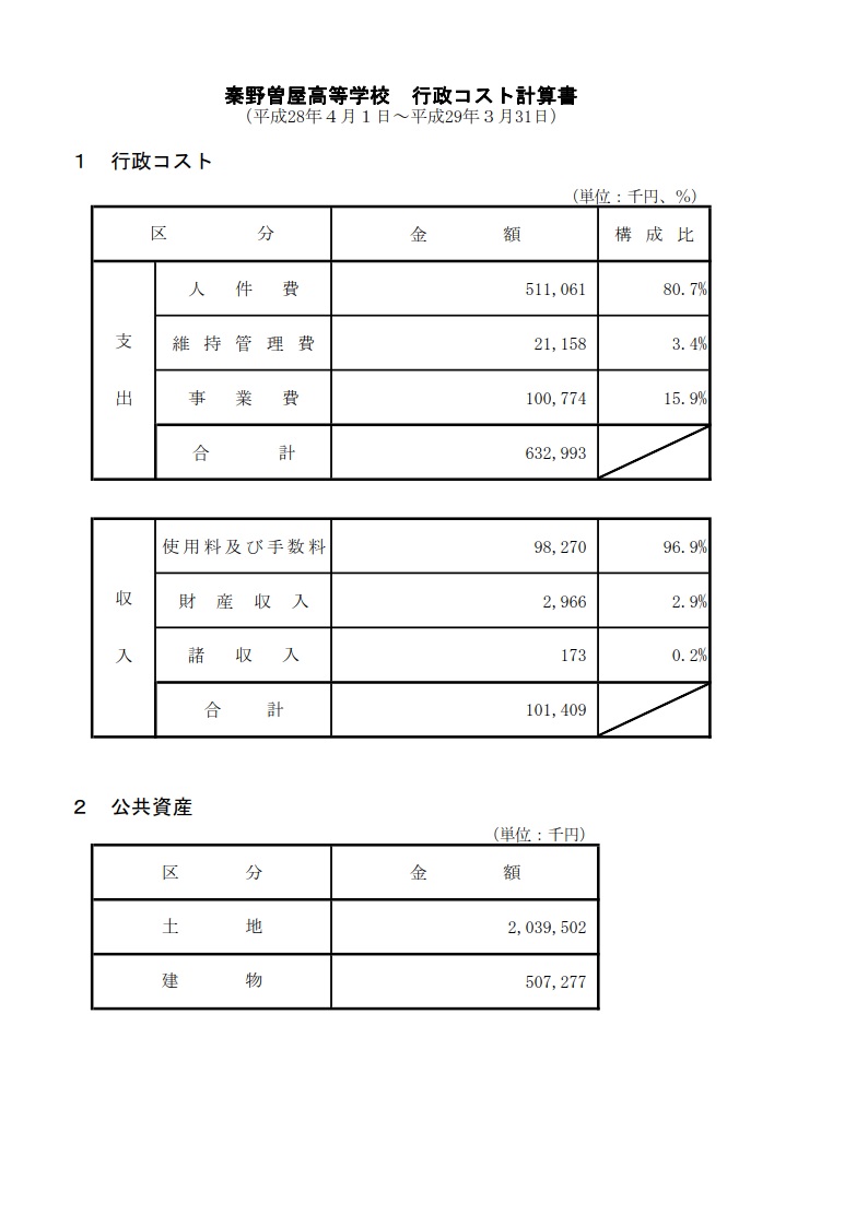 秦野曽屋高等学校 行政コスト計算書は、上記よりご覧になれます。