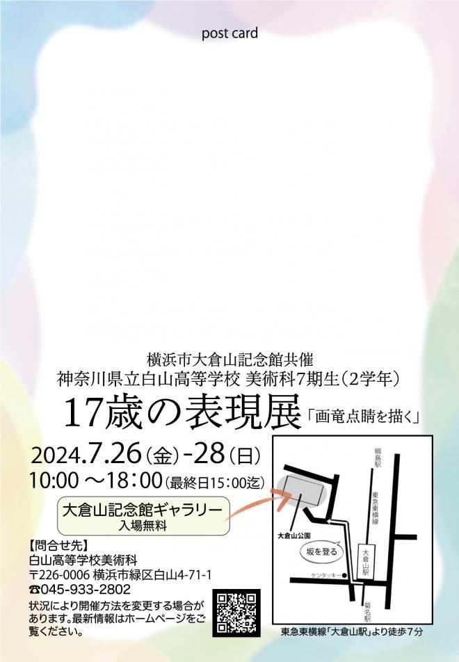 美術科では、7月に大倉山記念館ギャラリーにおいて白山高校美術科2年学外展示会を行っています。