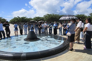 平和祈念公園資料館、ひめゆり平和祈念資料館では、写真や戦争経験者の証言集、証言映像などから戦争が住民に及ぼした影響について学びました。ひめゆりの塔の前では、哀悼の意を込めて黙とうをささげました。