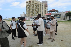 アメリカンビレッジにてロゲイニングを行いました。海外の方と積極的に英語でコミュニケーションをとりながら、与えられたミッションに挑んでいきました。再建途中ではありましたが、首里城では、三山時代の琉球の歴史・文化を学びました。