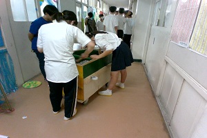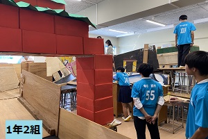文化祭まであと1日。この日は1日準備です。朝一番に物品移動を行い、本格的な装飾の段階に入りました。各クラスとも最終下校時刻のギリギリまで入念に準備をして本番に備えていました。