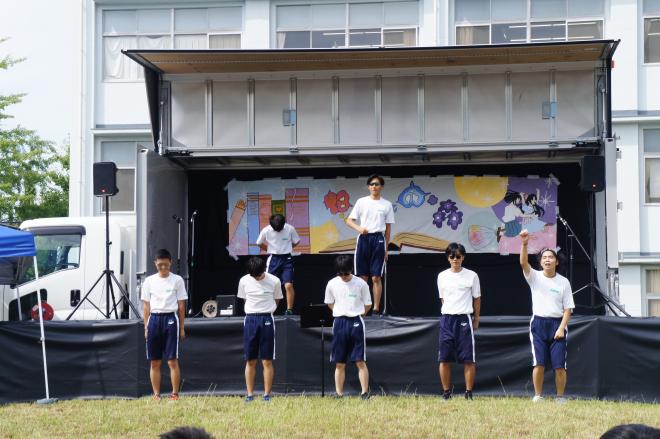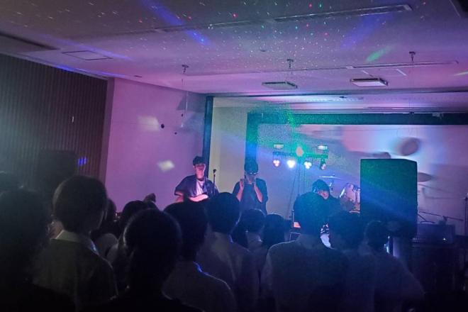 後夜祭は体育館で、ライブやダンスパフォーマンスなどで盛り上がりました。そして、一日の締めくくりに、グラウンドから花火が打ち上げられました。
