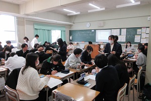 目的:主体的・対話的で深い学びを実現し得るディベート活動を通して、将来の国際社会で活躍する人材の育成を目指し、高い学力、コミュニケーション能力、リーダーシップを身につけさせるとともに、豊かな人間性・社会性を育む。