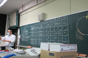 3回目の授業では、プレートごとに自然光でのコロニーの色・紫外線照射時のコロニーの色、コロニーの個数の違いを予想し、実際に光をあてて確かめました。また、結果をもとに考察を行いました。照射時に、発光するコロニーと発光しないコロニーが混ざっているプレートがあることに気が付き、その理由や仕組みについて考察できている生徒もいました。実験の結果が異なったプレートについてはその理由も考えている生徒もいました。