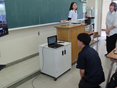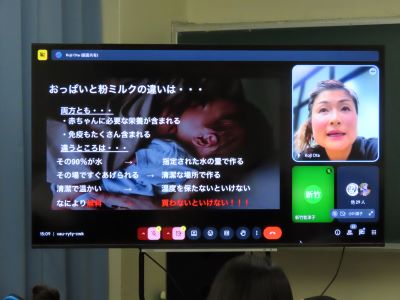 現在JICA海外協力隊員としてルワンダに駐在している本校英語科職員の太田滉二先生の協力のもと、現地JICAルワンダ事務所の健康管理委員であるガイトンさやかさんが、過去に国境なき医師団として活動していた際の母乳育児支援と困難に直面した現地の人々にとって本当に必要な支援とについて、現地から中継で話をしてくださいました。
