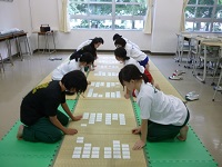 <文芸部> 小説班とかるた班があります。小説班はテーマを決めて部誌を作成し、かるた班は初心者から有段者まで技を磨いています。 |