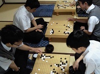 <囲碁部> 4路盤など初心者にもわかりやすい用具もそろえています。各自の棋力アップと個人戦・団体戦での全国大会出場を目指しています。 |