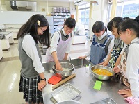 <家庭科部> 前期生・後期生一緒に活動(茶道・調理・工芸・手芸・着付けなど)をしています。希望者は茶道許状を取得できます。 |