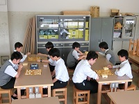 <将棋部> 将棋ブームで部員が増え、前期生・後期生が一緒に練習しています。前期は文科大臣杯、後期は高校竜王を目指しています。 |