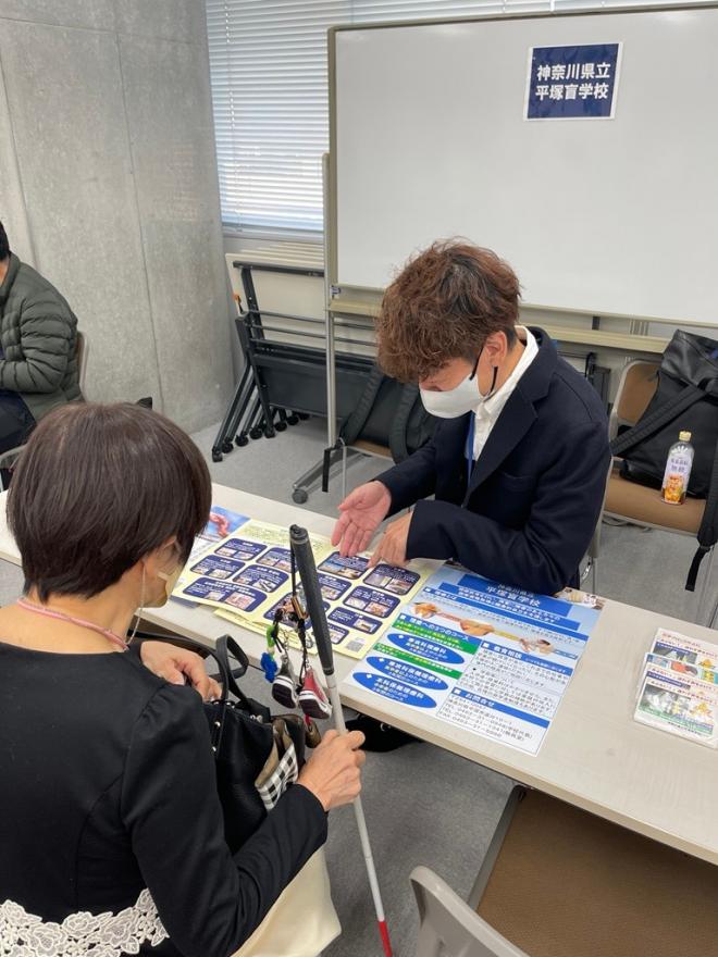 その催しの1つ、「かなエール」では、見えない・見えにくい方とご家族等向けに、専門家による相談と便利用具の紹介・体験会が実施され、昨年に引き続き本校も教育活動や施設の紹介をさせていただきました。