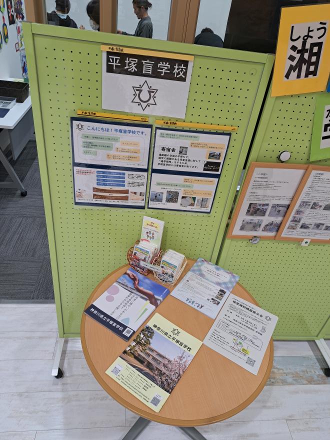 展示スペースの入り口には、各校の学校紹介パネルと、来場者へのプレゼントを用意しました。