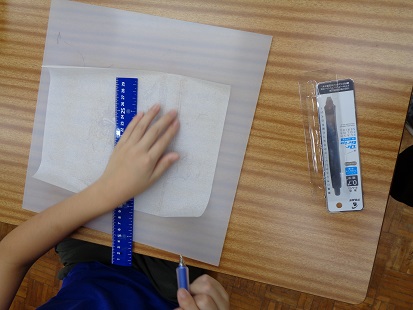 小学部児童が算数の学習で「ぶんまわし(コンパス)」や定規で作図している様子