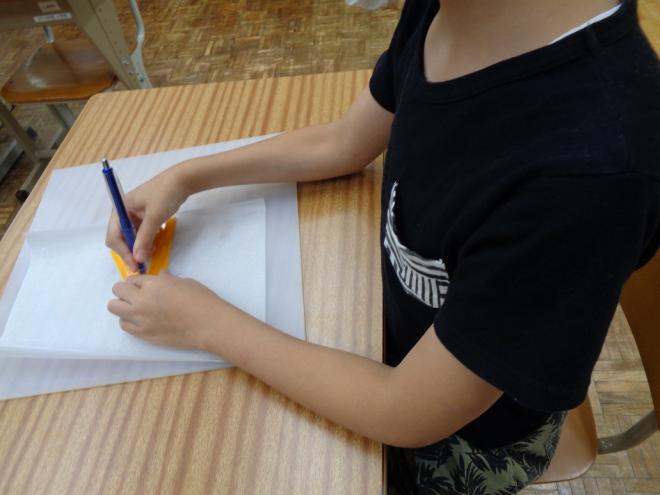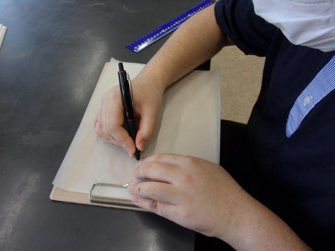 中学部生徒が線図を書いている様子と線図