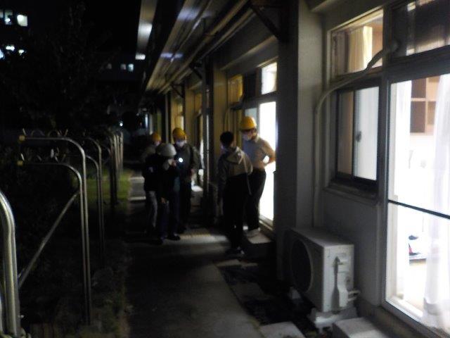 今回の訓練は、全校放送を使用したことや、夜間で外が暗い中での訓練であったり、また、寒さ対策も必要だったりと、毎回毎回、訓練ごとに異なる状況ではありますが、舎監の放送を聞き、指導員の誘導・見守りのもと、寄宿舎生全員が、6分程度で避難をすることができました。