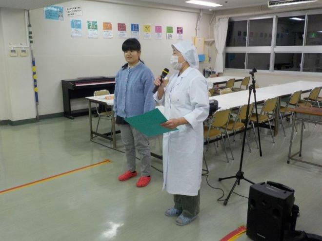17時20分になり、食事会から始まります。司会係の司会で寮祭が始まり、栄養士の先生がメニュー紹介をしてくれました。