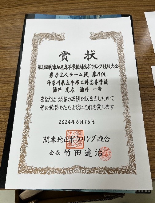 平塚工科高等学校 > 学校生活 > ニュース > 令和 6 年度のニュース > ボウリング部が大会で入賞しました
