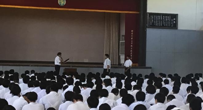 その後、3年生2名の生徒の表彰式がありました。表彰内容は以下の通りです。