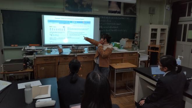 12月13日(火)にSSHシンガポール海外研修事前学習として、慶應義塾大学の学生を講師に招き、講師の研究(Effects of a Corpus-driven Approach on Writing and Word Choice)に関する英語でのプレゼンテーションを聞いたり、英語でのディスカッションをしたりしました。