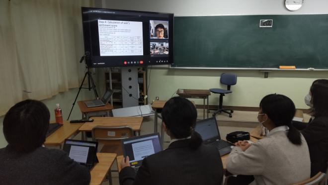 12月6日(火)にSSHシンガポール海外研修事前学習として、神奈川工科大学大学院の留学生を講師に招き、講師の研究(ソーシャルメディアユーザを対象とした感情推定モデルに基づくコンテンツ推薦手法)に関する英語でのプレゼンテーションを聞いたり、英語でのディスカッションをしたりしました。