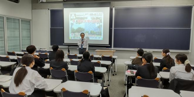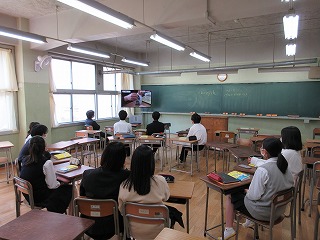 ※今回の講演は新型コロナウイルス感染症のまん延防止のため、人数を制限して1教室で行い、その様子を各教室へライブ配信するという形態で行いました。