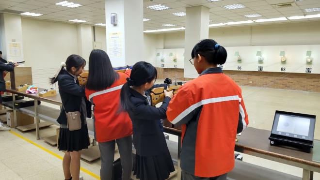 新北市立林口高級中学では、歓迎セレモニーが行われた後、各学校の生徒による学校紹介や探究活動の発表、生徒同士のフリートークが行われました。英語の授業やメタバースを活用した生物実験といった授業に参加をしました。加えて、台湾ナショナルチームコーチの下、ガンシューティングの体験などもすることができ、台湾の高校で多くのことを経験し学びました。