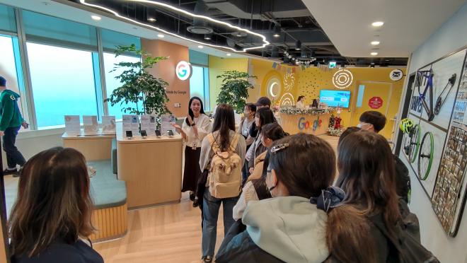 世界で最も高いGoogleオフィスであるGoogle Taipeiでは、オフィスの見学や職員との交流を行いました。「生成AIはポテンシャルを秘めている。しかし、人間の創造性や専門性にとって代わることはないだろうし、批判的思考力(Critical thinking)を学ぶことが重要である」といった話があり、生徒は興味深く話を聞いていました。