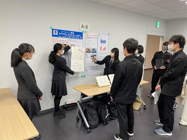 3月23日(木)、県立秦野総合高校にて、平塚秦野地区の「探究的学習発表会」が行われました。この地区の各高校の代表生徒の、ポスターを使った発表です。