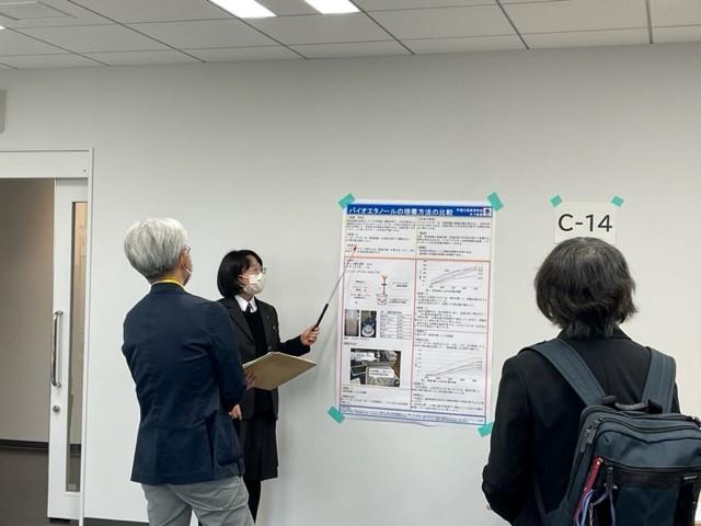 平塚江南高校からは3年生のゼミ代表として「バイオエタノールの培養方法の比較」という研究で発表してきました。当日は他のSSH校の生徒や教員、大学教員、審査員など様々な人に説明しました。また、他の学校の発表を聞く時間もあり、興味深い発表を説明してもらうことができました。
