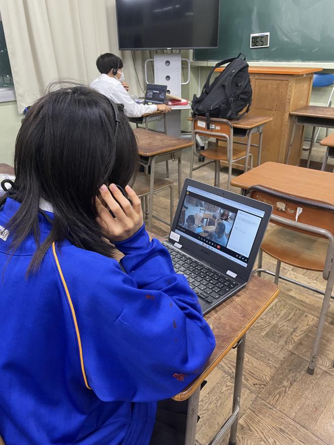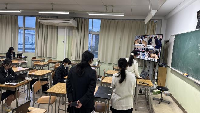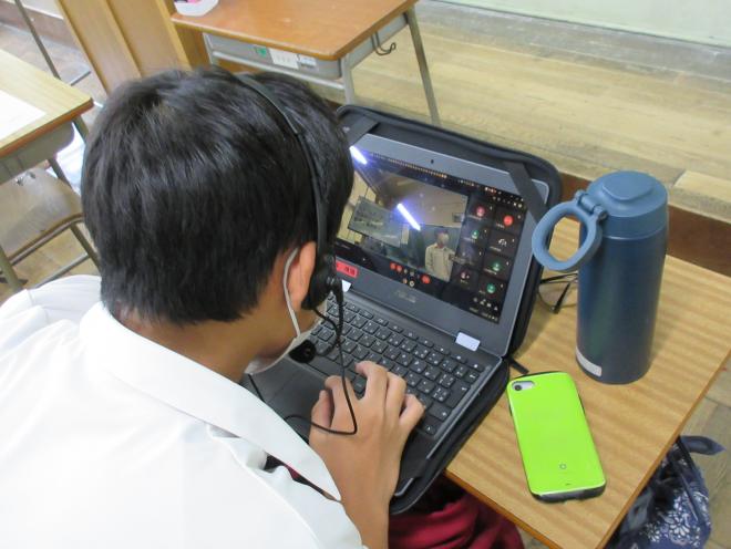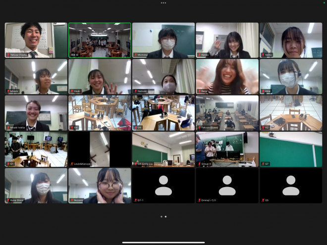 1回目の交流では、お互い英語で自己紹介や学校紹介をして親睦を深めることができました。2回目には両校の生徒がブレイクアウトルームを作り、マンツーマンで英会話の練習をしました。