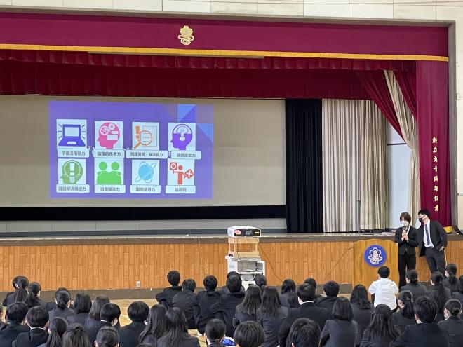 AIが進化している中で、どのように過ごしたら「使われる側ではなく使う側」となるのか、そのために高校生活で大切なこと、心がけるべきことをわかりやすく興味深くお話しいただきました。