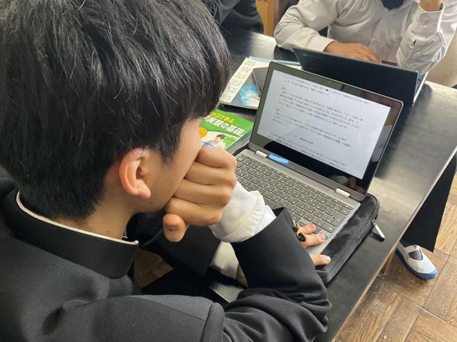 1年生は共創探究の授業で、今まで学んできた探究のプロセスを実践する「ミニ探究」に取り組んでいます。