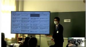 令和2年11月13日の金曜日3校時に、1学年の「共創探究基礎」の公開研究授業が実施されました。この公開研究授業は県の理数教育推進校を対象としたもので、オンラインにより限定公開されたものです。授業では、探究活動のプロセスの中でも特に重要な「問いを立てる」という内容を扱い、課題の内容について種類別に問いを立て、その原因を分析する活動をグループで取り組みました。授業の最後にはいくつかのグループが発表し、全体で共有しました。かなり難しい課題に取り組みましたが、生徒は個々の意見をタブレットを活用してグループで共有し、問いを立てることの意義をよく理解できました。