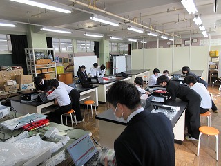 3月16日(木)に2年生全員が、課題研究の中間発表会を行いました。2年生が20会場に分かれてスライドでの発表を行い、1年生はそれぞれの希望に合わせて対面での見学を行いました。