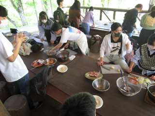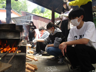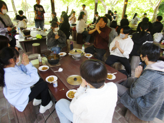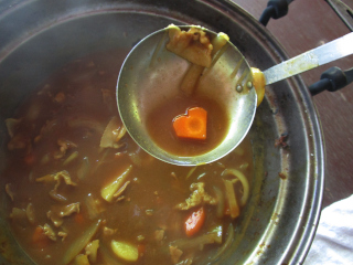 現地で飯盒炊爨を行い、みんなでカレーライスを食べました。