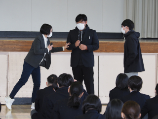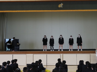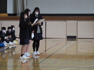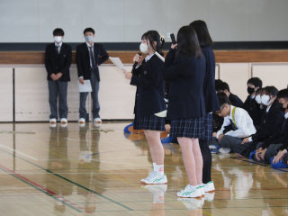 初めに在校生を代表して生徒会役員から歓迎のことばを述べました。