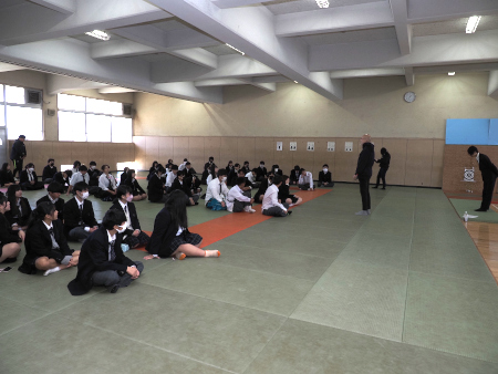 1年次は引き続き、体育館でオリエンテーションを受けました。