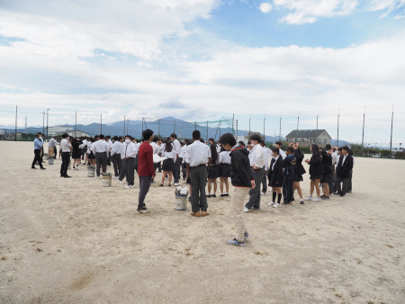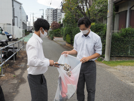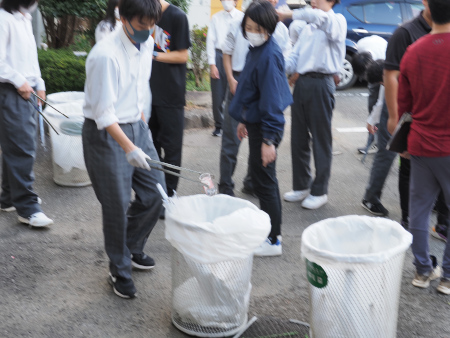 学校に戻り、環境委員の生徒がゴミの分別と後片付けを行いました。タバコの吸い殻や空き箱などのゴミが多い印象を受けました。