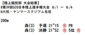保土ケ谷高等学校 > 学校生活 > 部活動 > 陸上競技部 > 2023年6月 U20日本選手権 200m 5位入賞の快挙!