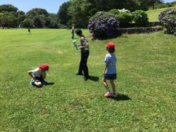 快晴だった6月17日(火曜日)に、根岸森林公園に校外学習に行ってきました。広場に着くと、どこまでも続く緑の芝生に目を輝かせる子どもたち!そり滑りやシャボン玉をしたり、広い芝生で思い切り走ったりするのはとても気持ちがよかったですね♪昼食は、鳥良商店のランチを食べました。事前に自分たちで選んだからあげや親子丼、とってもおいしかったね!帰りは市営バスに乗り、バス停からは坂道を登って帰りました。暑い中、しっかりと最後まで歩いた子どもたち。本当によく頑張りました!次のお出かけも、みんなで楽しい思い出をつくりましょう♪