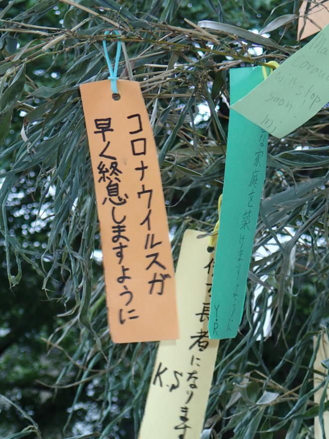 7月7日、本校の生徒昇降口前にて、七夕の飾りつけを行いました。