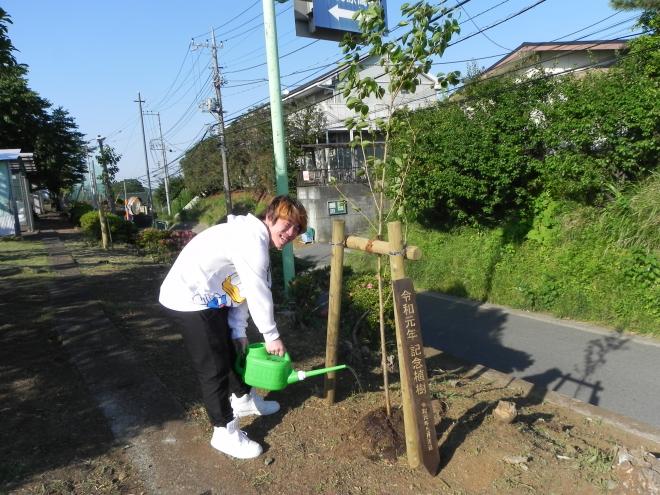 令和元年5月23日、本校正門のそばに桜の植樹を行いました。今はまだ小さな苗木ですが、9年後、本校の創立100周年を迎えるころには、見事な花を咲かせてくれることでしょう。なお、植樹は定時制生徒を代表して生徒会長が行いました、記念樹の成長が楽しみです!