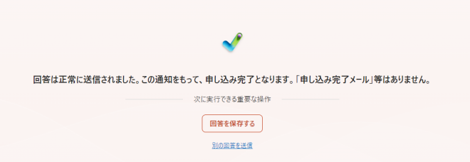 以下のような画面が表示されれば申し込み・キャンセル完了です。(申し込み完了メール等はありません)