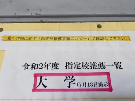 指定校推薦の一覧も張り出され、いよいよ夏に向けて受験モードが高まっている様子です。