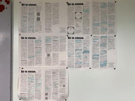 3年生のクラスの廊下には、進路だよりが掲示されています。