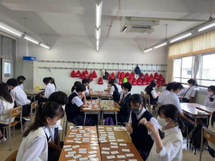 「うかりける~」も、「このたびは~」も、「秋の田の~」も、上の句を読んだところで一向に手は動かないものの、「ちはやぶる~」だけは、かるた選手権大会さながらの迫力で札をとっていく生徒達。