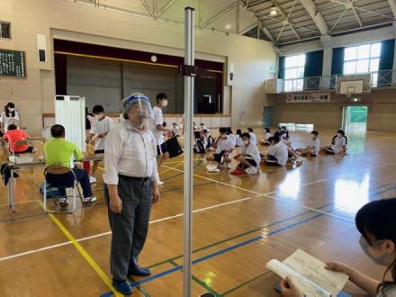 1年生対象の身体測定です。本来でしたら全学年一斉に行うものですが、今年度はこのご時世のため、学年を分けて実施することになりました。クラスごとにルートも変わっており、なるべく三密を避けるよう工夫して行われました。