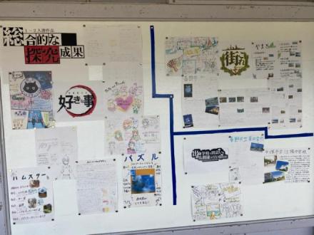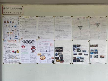 こちらは各クラスの廊下です。休業中に出題された「総合的な探究の時間」の課題で、よりわかりやすく表現されているものをピックアップして飾られています。