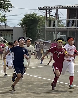 借り人競争では運び人がまずボールを運びます。一番最初に走っていた一年生二人がボールを背中に挟んで縦に走っていたのですが、自分たちを追い抜かしたペアを真似して横向きにカニ歩きのような体制に変えてからスピードを上げていました。また他の学年でもビブスを着るとき相手が着せやすいように途中からしゃがんでいる様子が見られて、各々工夫していました。競技中は焦りや緊張があるに関わらず冷静に声を掛け合い軌道修正していて、その判断力と行動力に驚かされました。